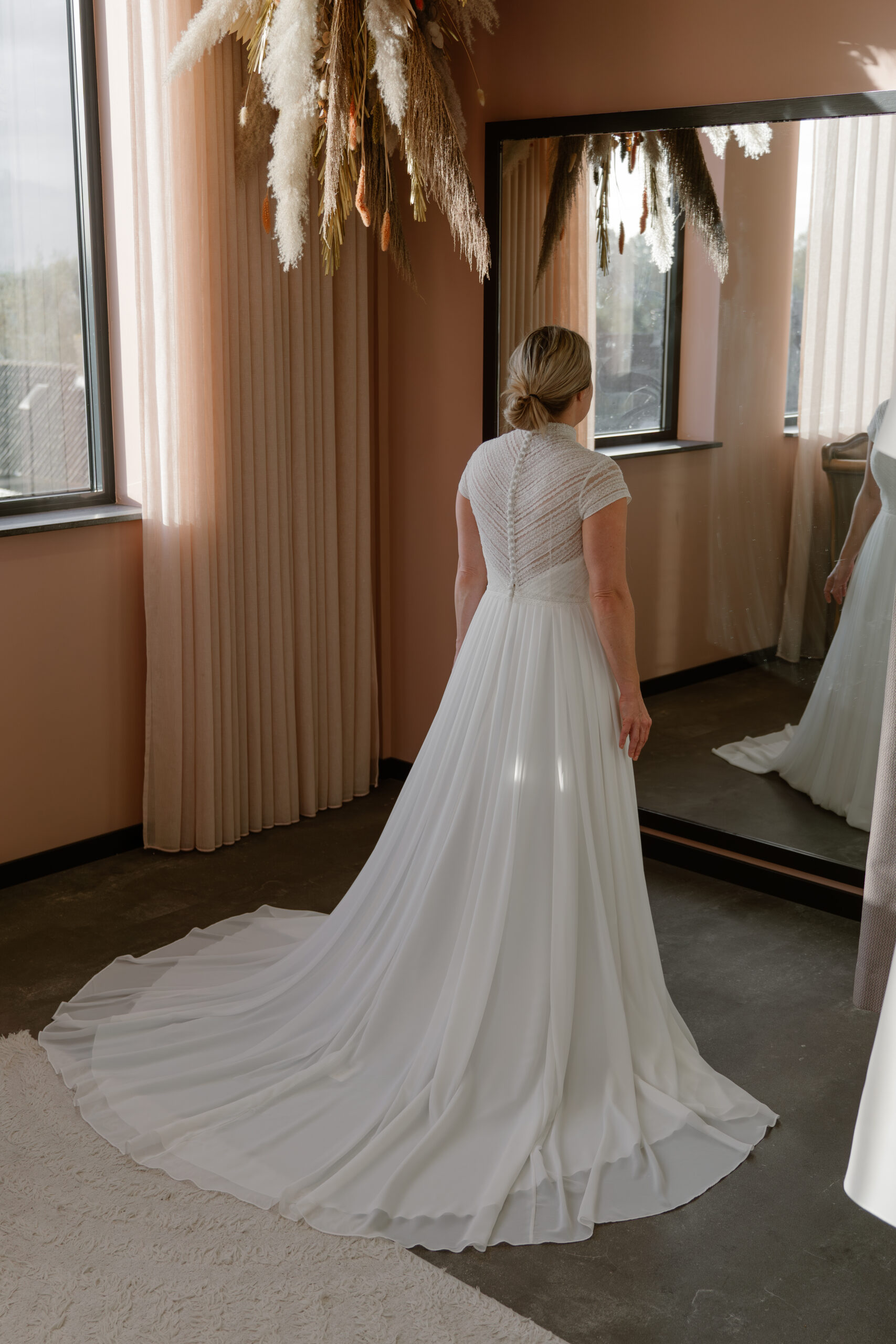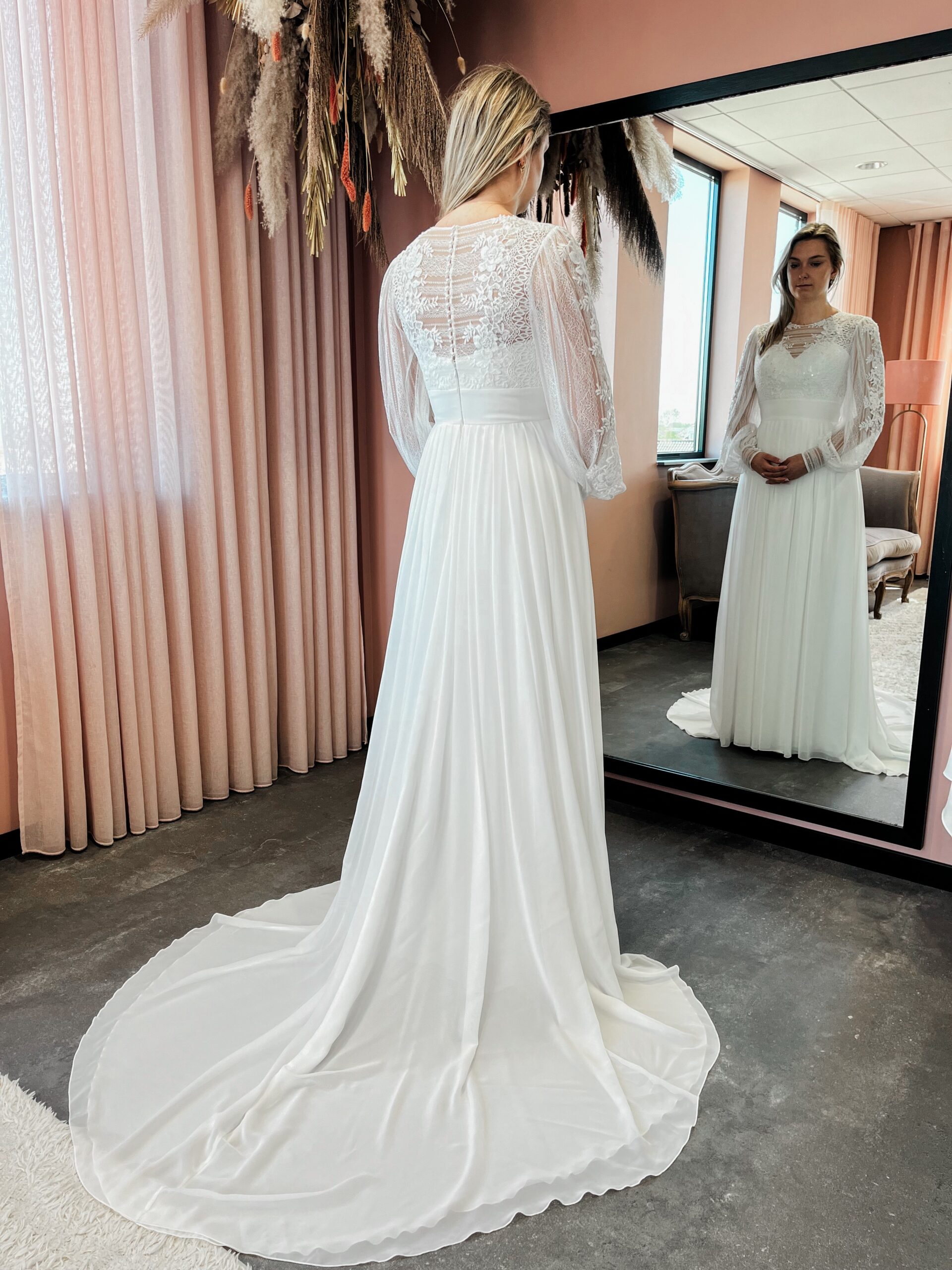 We begrijpen dat de zoektocht naar de perfecte jurk een emotionele en belangrijke stap is. Daarom zorgen we ervoor dat je je op je gemak voelt in onze stijlvolle omgeving, omringd door de luxe bruidsmode van onder andere Pronovias. Of je nu gefascineerd bent door een schitterende A-lijn jurk of een romantische mermaidstijl, onze collectie biedt iets voor elke smaak.