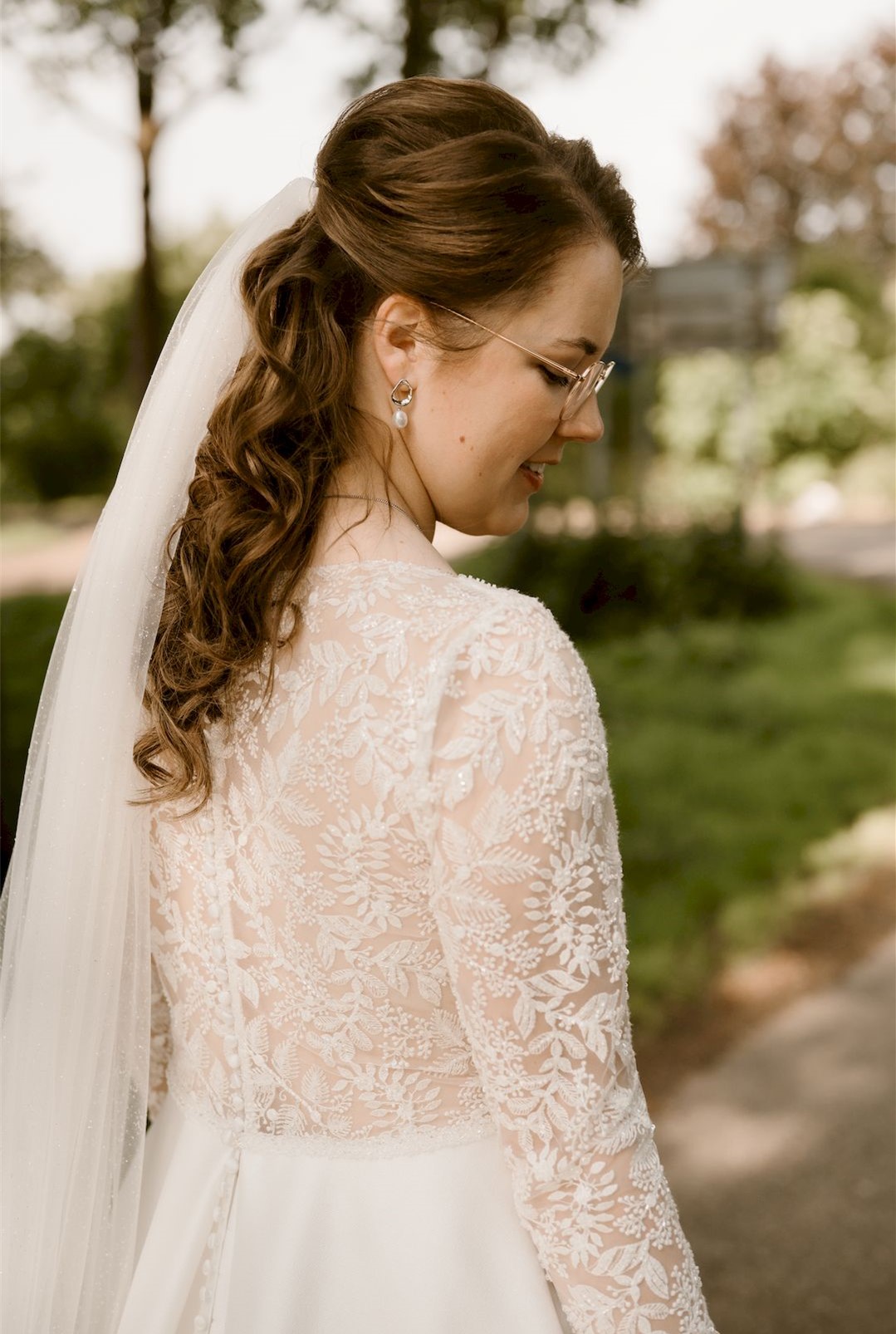 Bij deze wat foto’s van onze bruiloft. Ik ben echt super blij met de jurk!! Kreeg veel complimenten dat het een echte Dorien-jurk is. Hij zat als gegoten. En de sluier heeft zijn sporen mooi achtergelaten overal ✨😍