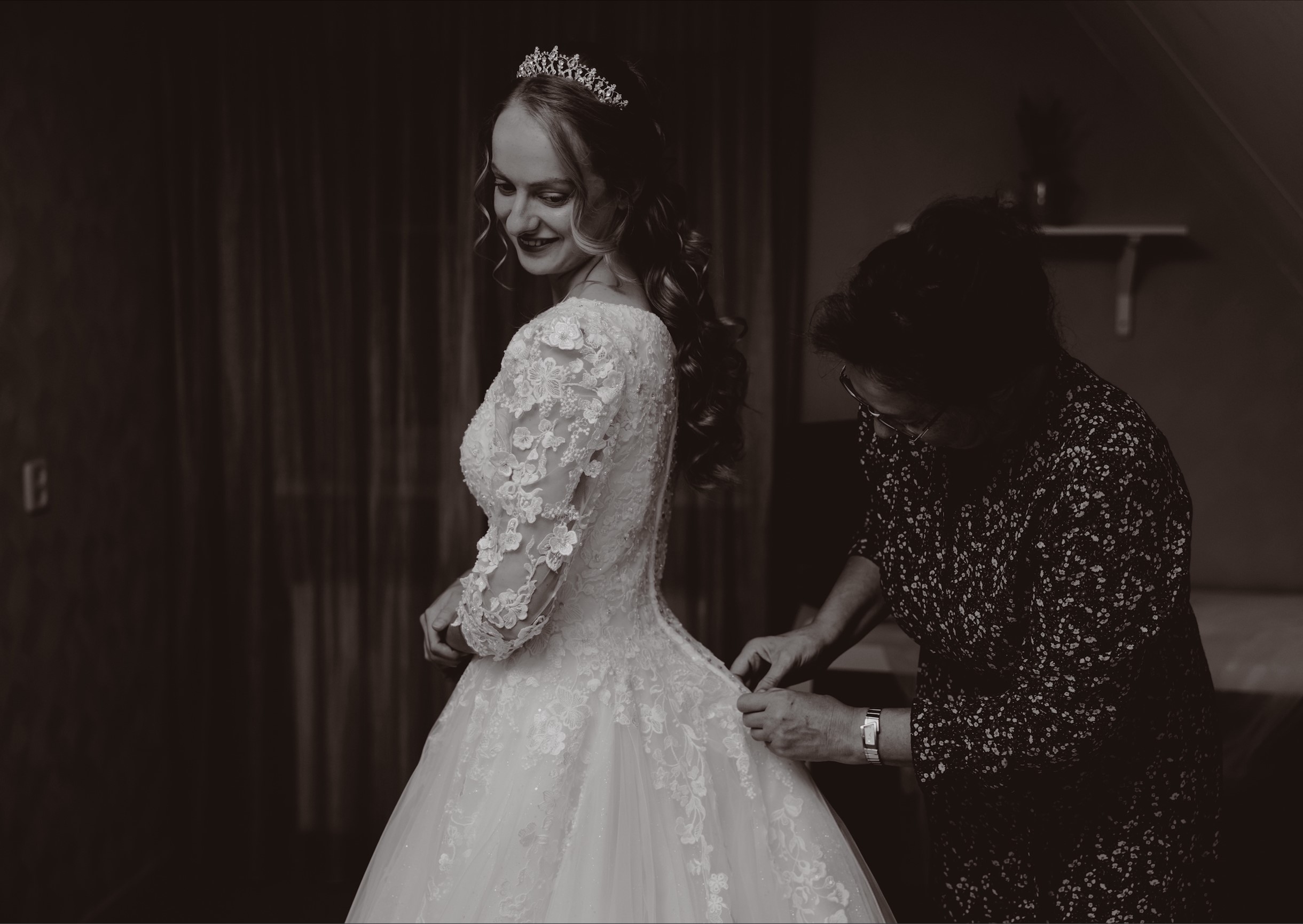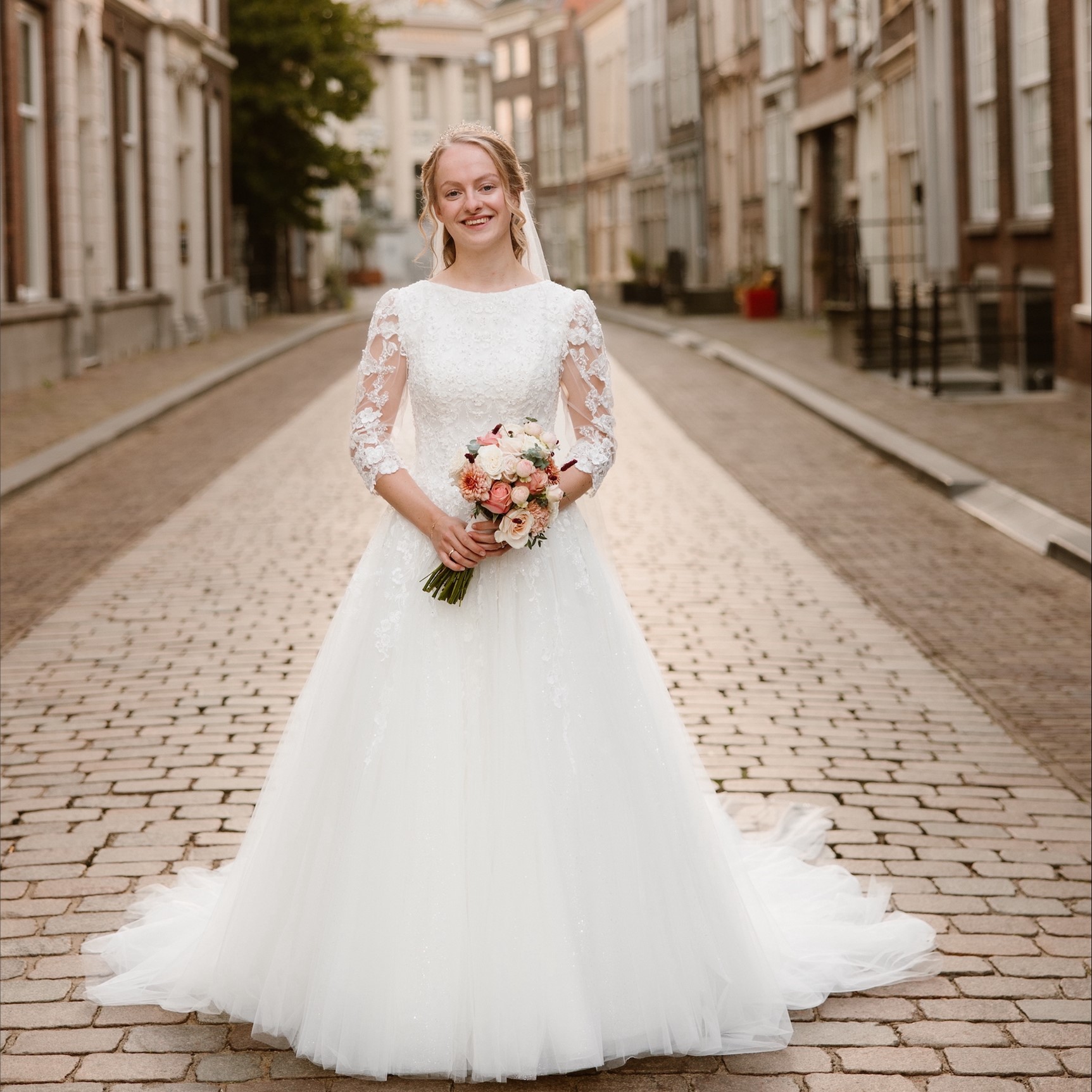 Erica koos een prachtige jurk uit voor haar trouwdag. Benieuwd welke merken we allemaal in huis hebben?