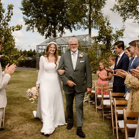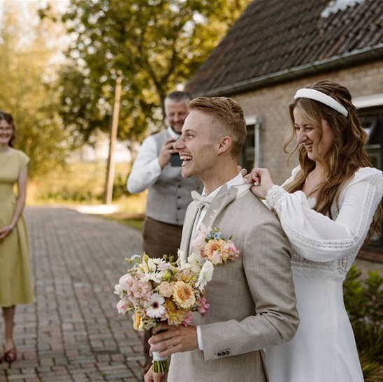 De persoonlijke aandacht vonden wij echt heel fijn; je merkt dat ze de tijd voor je nemen en dat maakt het hele proces extra bijzonder. Daarnaast zat de bruidskleding heerlijk, waardoor we er niet alleen mooi uitzagen, maar er ook echt van konden genieten op de dag zelf. Wat wij ook heel prettig vonden, is dat er een groot assortiment is aan bruidskleding, maar ook aan bruidsieraden, sluiers en accessoires, alles op één plek. Dat maakte het kiezen extra leuk en overzichtelijk.
