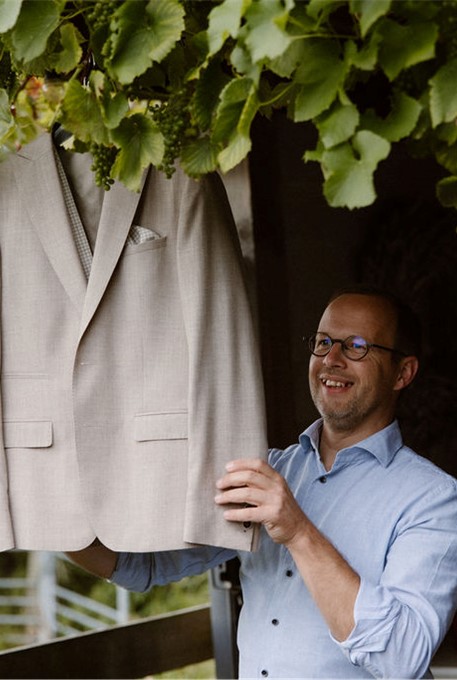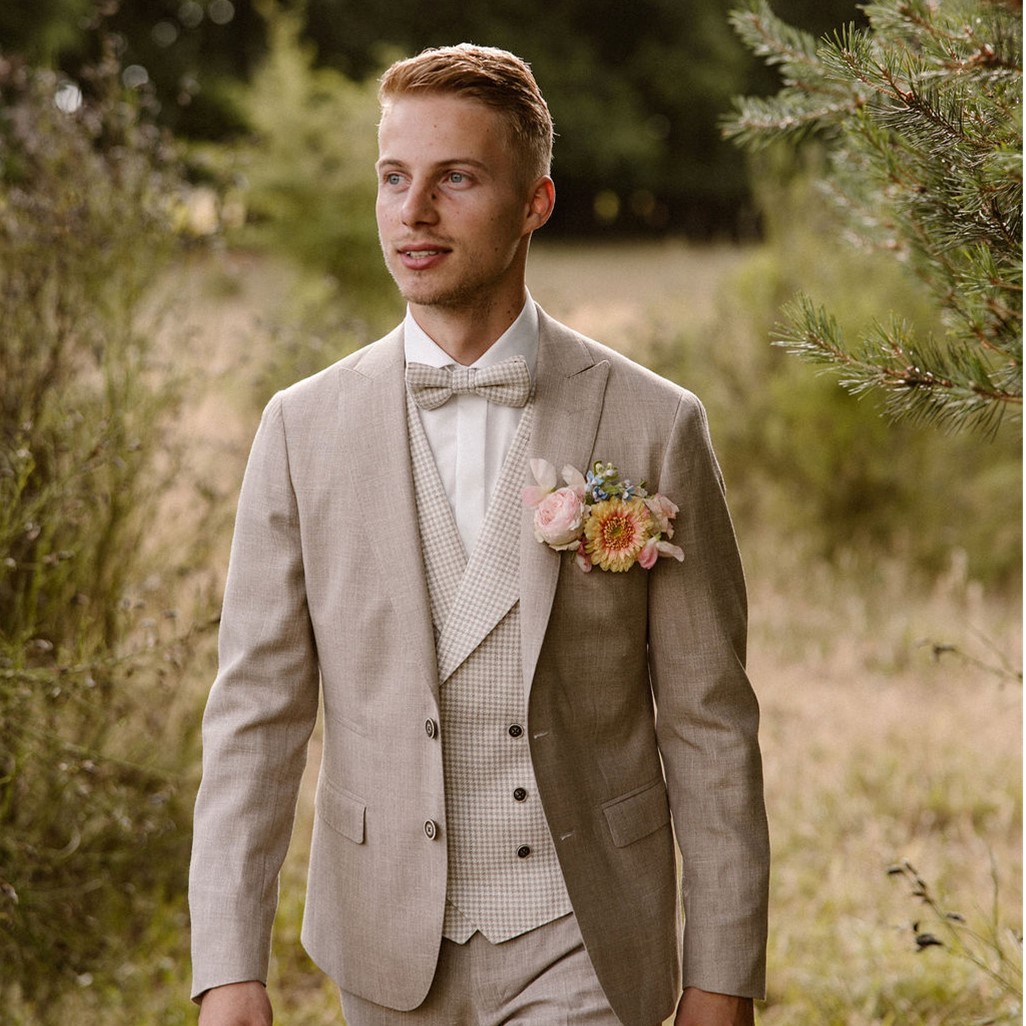 Het trouwpak dat Pieter koos voor zijn trouwdag is van TS Tailormade. Een eigentijds trouwpak op maat is helemaal van nu. Zelf je trouwpak ontwerpen? Met TS-Tailormade hebben wij een label ontwikkeld waarbij al jouw wensen mogelijk zijn. Je kunt kiezen uit een keur aan stoffen uit de tailormade-collectie. Hoe exclusief wil je het hebben? En alle details aan het kostuum? Ook die bepaal je zélf!