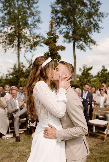 De trouwjurk die Noah koos voor haar trouwdag is van Rosa Clara. De jurken van Rosa Clará zijn een ode aan vrouwelijke elegantie. Elk ontwerp straalt klasse uit; van de perfecte pasvorm tot de zorgvuldig gekozen stoffen en subtiele materialen. Het Spaanse modehuis, wereldwijd bekend om zijn moderne couturestijl, weet als geen ander hoe een bruid wil stralen: stijlvol, zelfverzekerd en met een vleugje internationale allure.