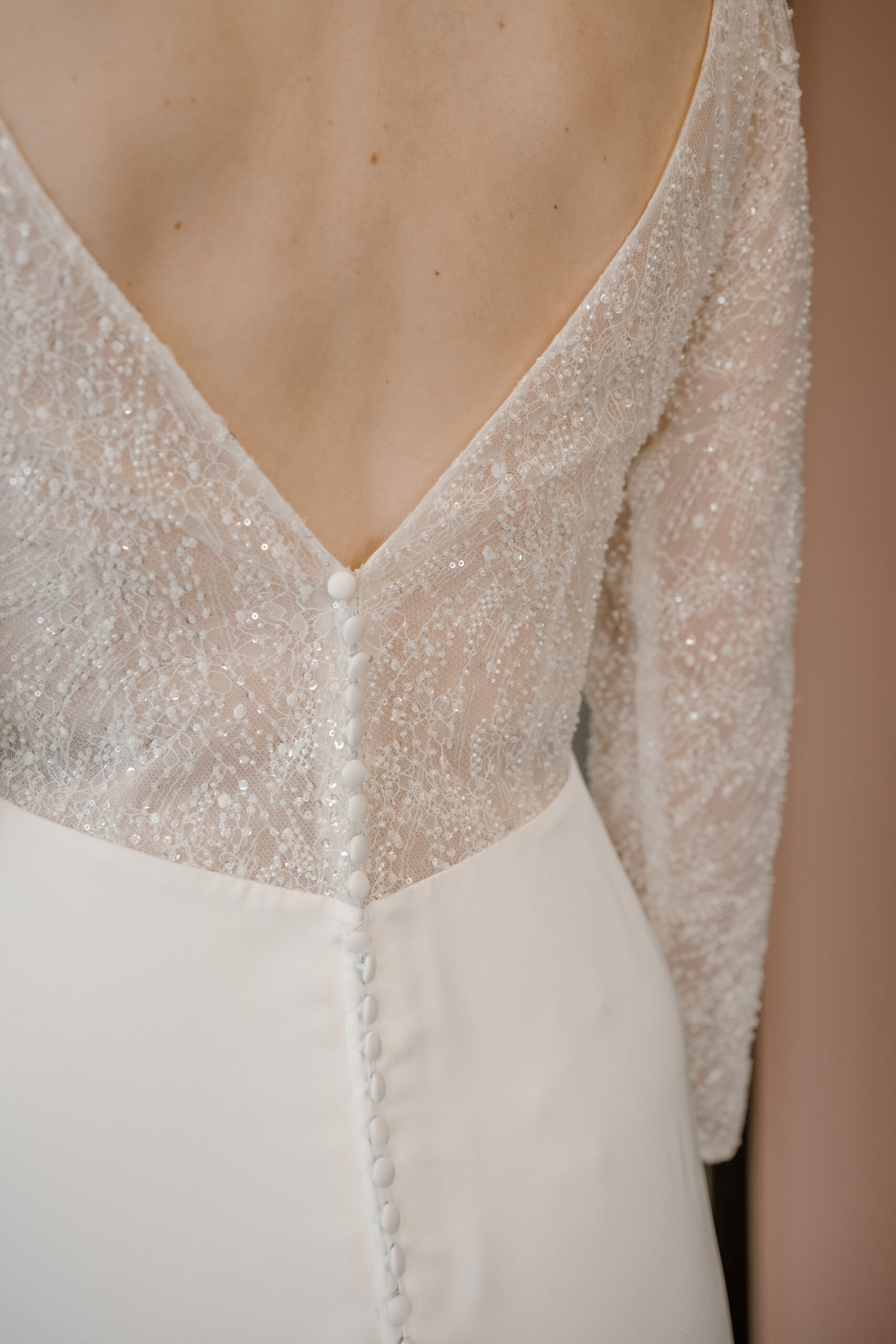 - Materiaal: Satijn, Kralen, Kant, Glitterstof