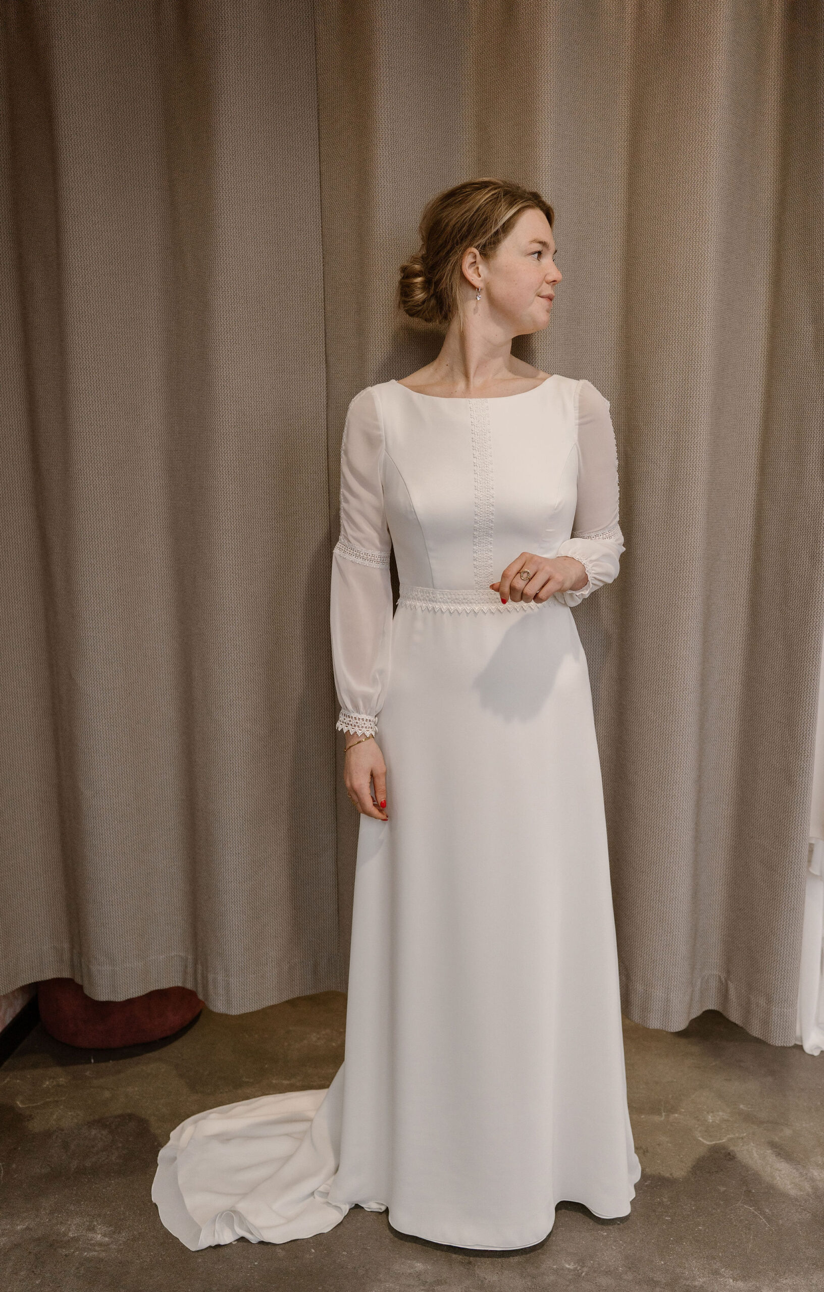 In rustige tijden is het mogelijk om de jurk te laten vermaken. Afhankelijk van hoeveel aanpassingen er nodig zijn en de capaciteit van het atelier, bekijken we of dit mogelijk is. Neem even met ons contact op, dan kijken we met je mee!