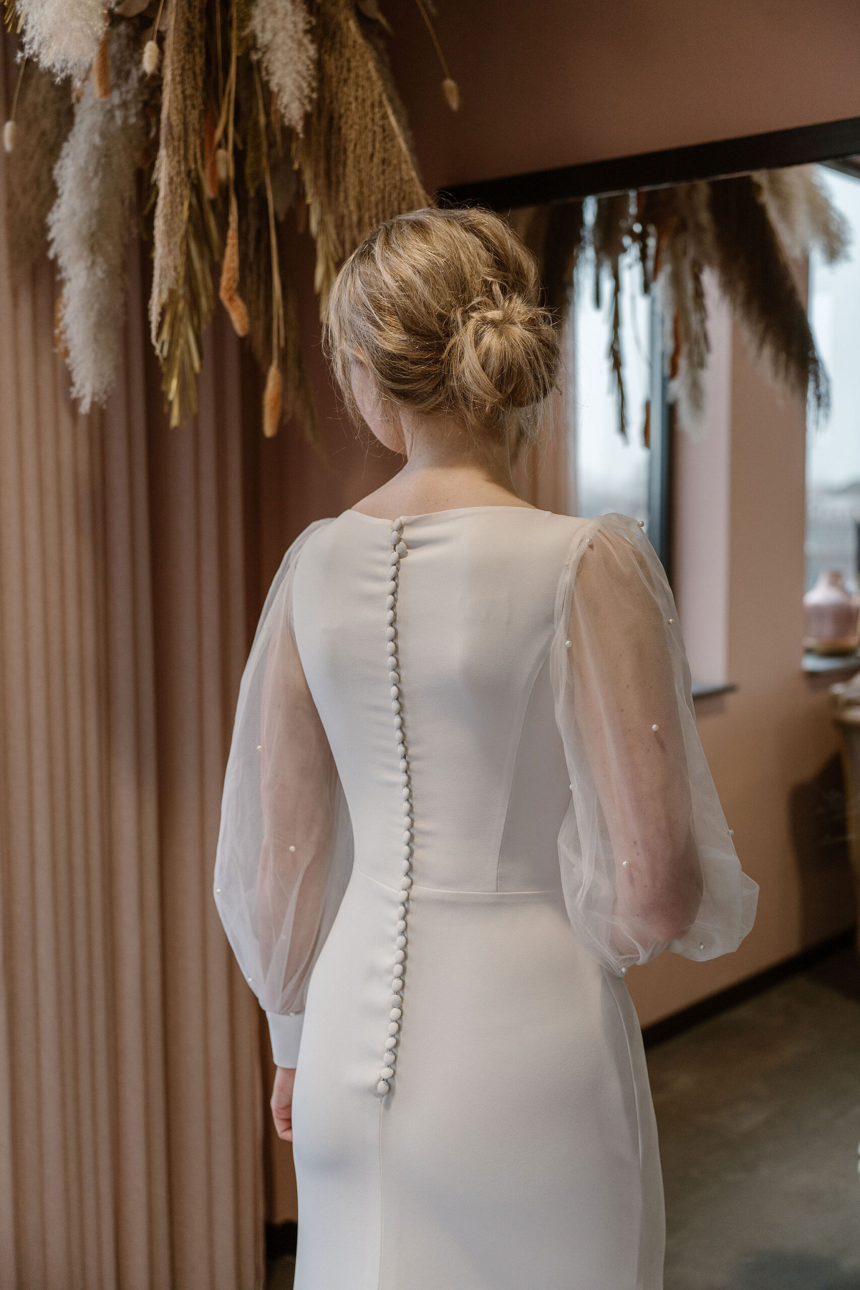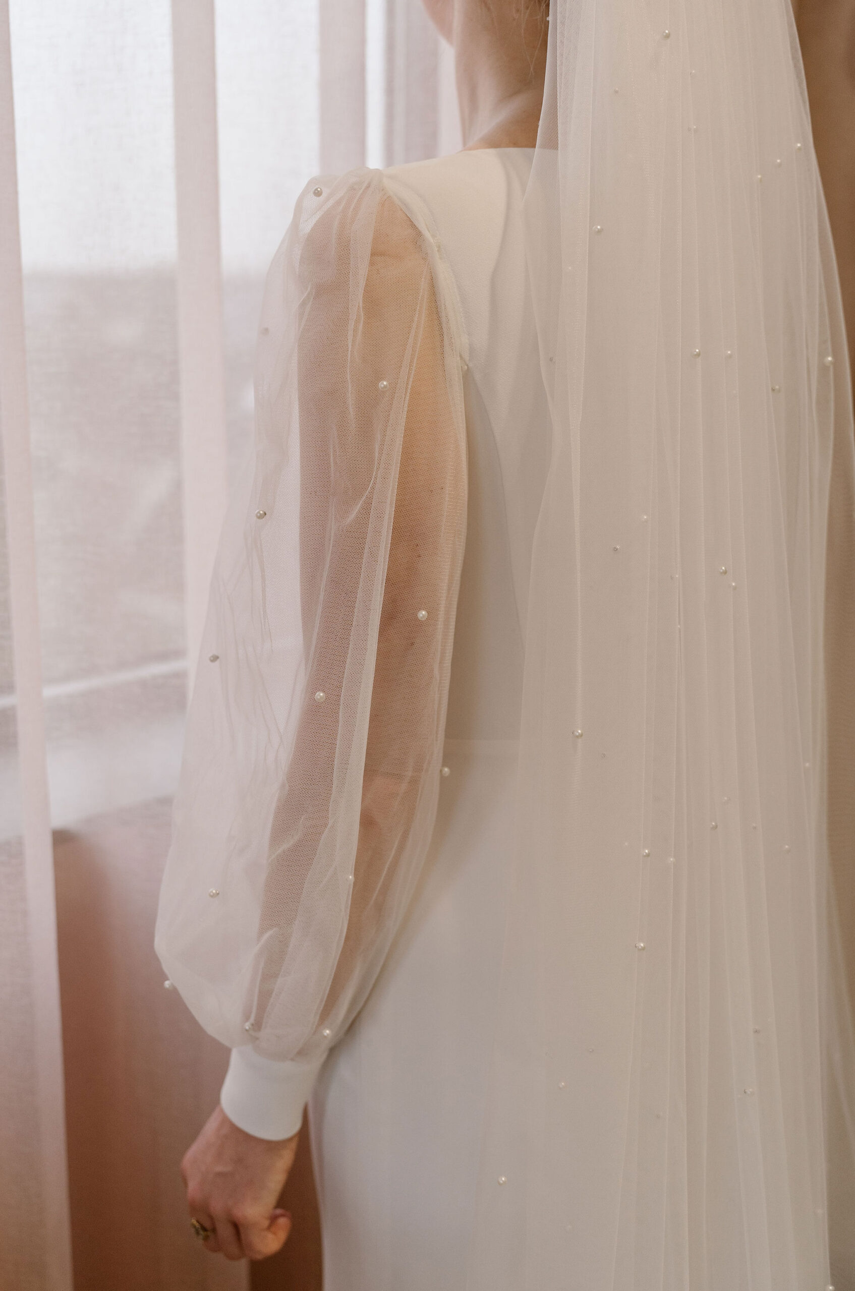 De 1981-2244 van 2ImpressU is een elegante basisjurk in een vrouwelijke fit & flare pasvorm. De zachte stof zorgt voor een stijlvolle en rustige uitstraling, terwijl de parel tule mouwen de jurk een verfijnd en romantisch karakter geven. De subtiele pareldetails zorgen voor een bijzondere touch en maken deze jurk perfect voor de bruid die houdt van zachte elegantie.