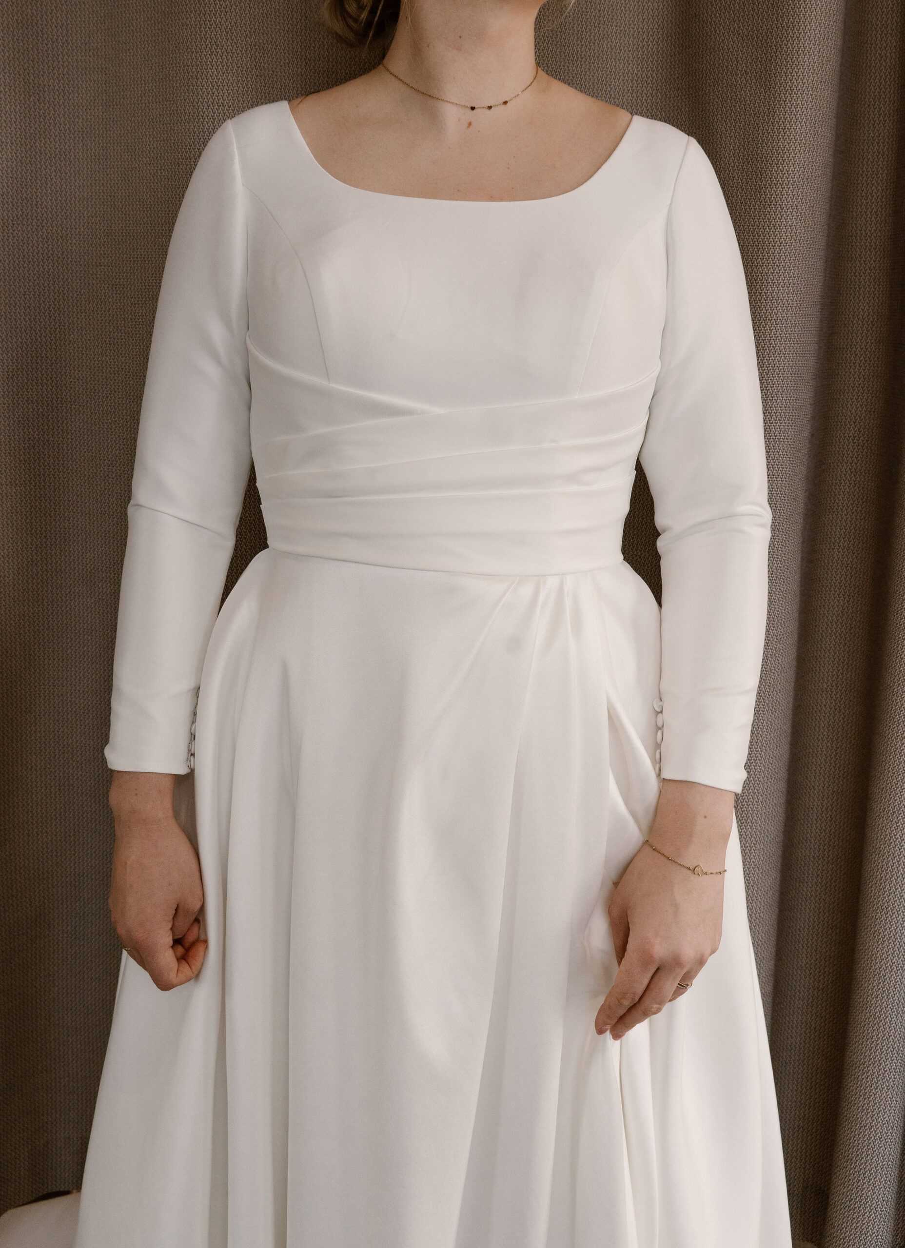 Deze jurk is ontstaan uit een samenwerking tussen het atelier van Tres Chic en Atelier Speksnijder, waardoor hij perfect aansluit bij de wensen van onze bruiden.