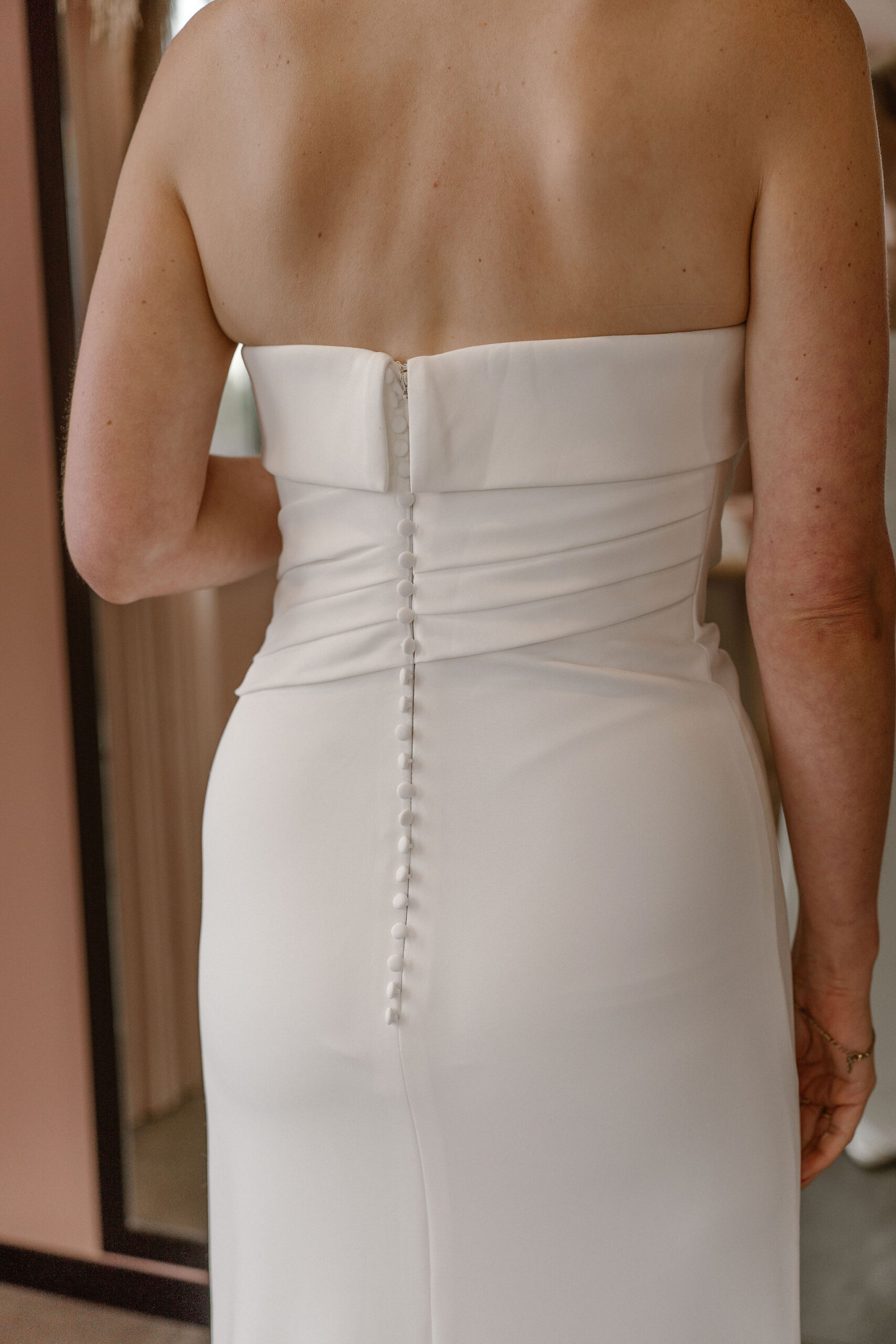 In rustige tijden is het mogelijk om de jurk te laten vermaken. Afhankelijk van hoeveel aanpassingen er nodig zijn en de capaciteit van het atelier, bekijken we of dit mogelijk is. Neem even met ons contact op, dan kijken we met je mee!
