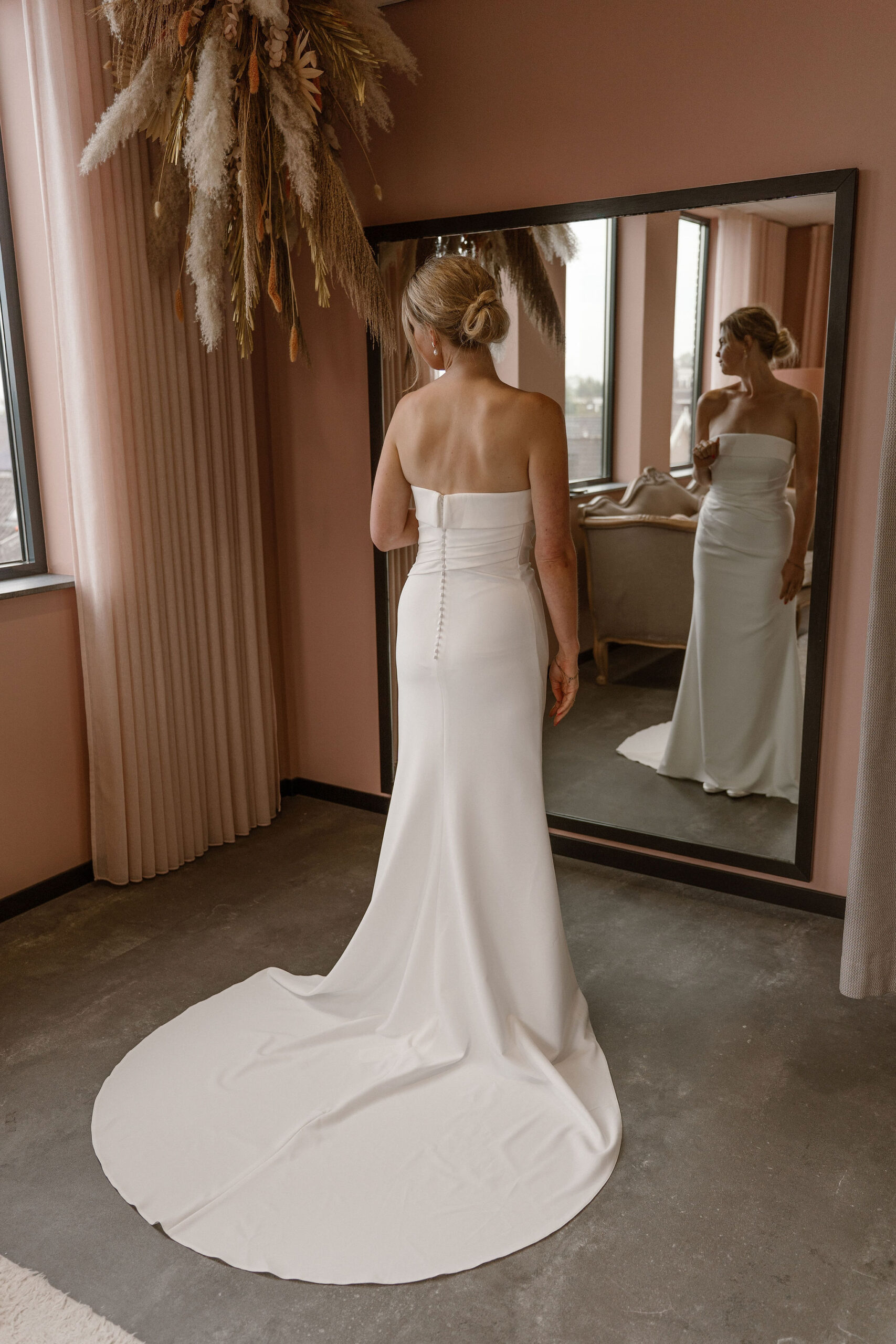 Het kan zijn dat je nog wat schommelt in gewicht, maar voor het vermaken is het noodzakelijk dat dit in dezelfde maat blijft. Gelukkig is er altijd een klein beetje ruimte om de jurk in- of uit te stikken, maar probeer echt stabiel te blijven in gewicht. Ben je van plan nog vele kilo’s af te vallen voor je bruiloft? Benoem dit dan bij aankoop, dan denken wij mee voor een oplossing!