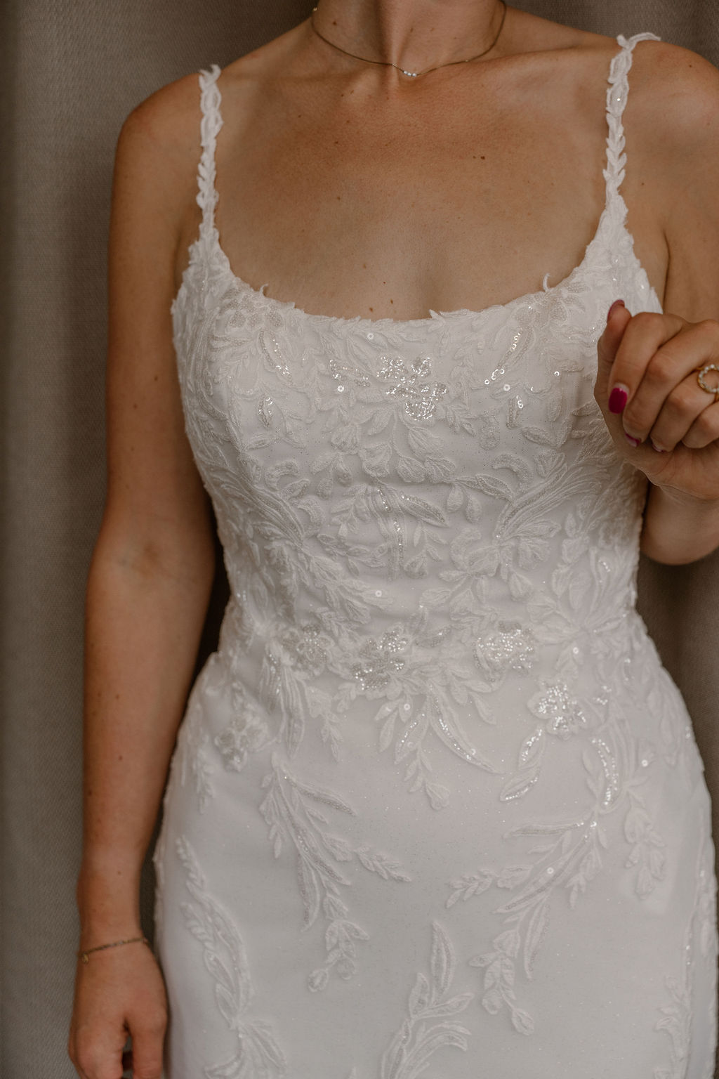 Het kan zijn dat je nog wat schommelt in gewicht, maar voor het vermaken is het noodzakelijk dat dit in dezelfde maat blijft. Gelukkig is er altijd een klein beetje ruimte om de jurk in- of uit te stikken, maar probeer echt stabiel te blijven in gewicht. Ben je van plan nog vele kilo’s af te vallen voor je bruiloft? Benoem dit dan bij aankoop, dan denken wij mee voor een oplossing!