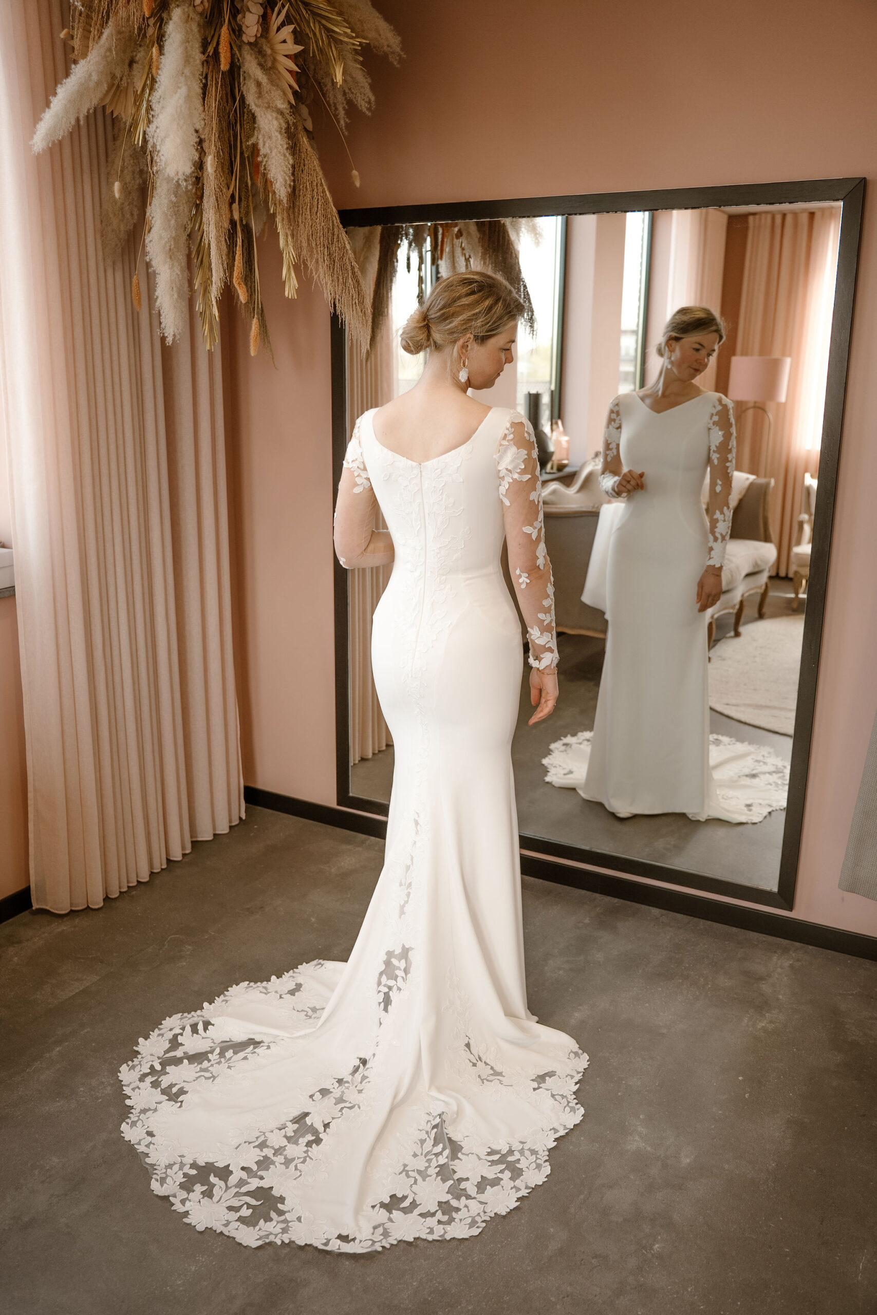 Van tevoren krijg je een mail met wat vragen ter voorbereiding op de afspraak. Hierin vragen wij ook om inspiratieplaatjes en hoe jij je jurk voor je ziet. Dat is sowieso voor jezelf belangrijk om over na te denken. Stel jezelf bijvoorbeeld deze vragen: