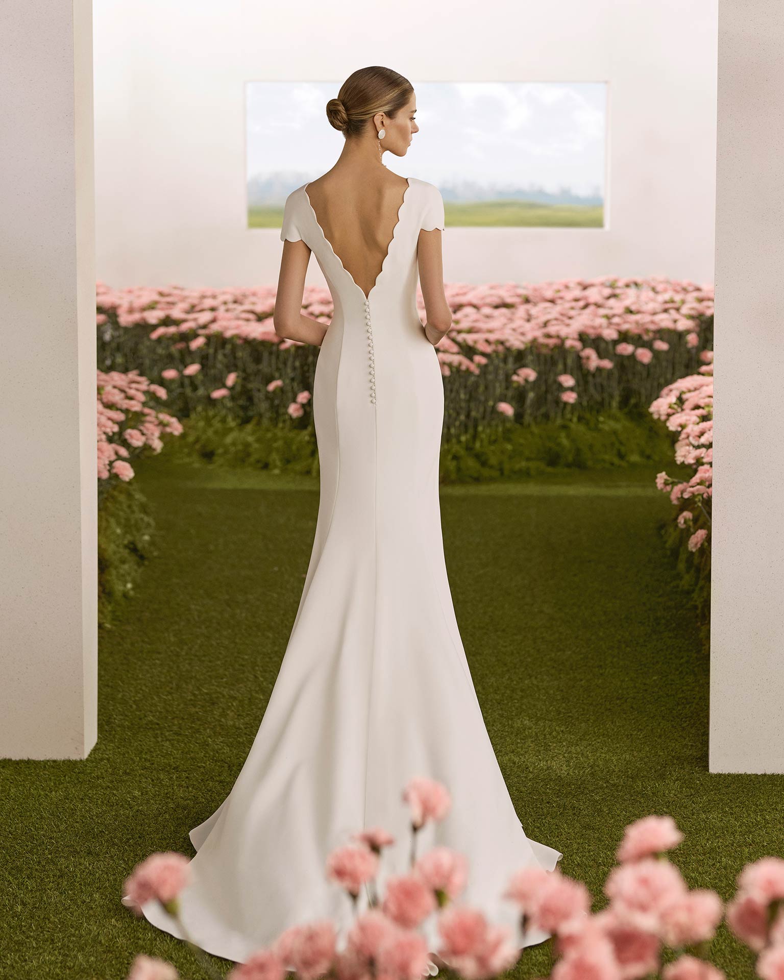 Een classy trouwjurk uit de collectie van Rosa Clara Couture, model Rial! Een lange mermaid dress gemaakt van een elastische crêpe die gegoten zit om je lijf. De schulpvormige details maken deze jurk tot een feestje. Samen met de korte mouwen, de boothals en de v-vorm op de rug weet je zeker dat jij kan stralen als bruid! Let op: de jurk in onze winkel is met +10 cm vanaf het diepste punt op de rug verhoogd.